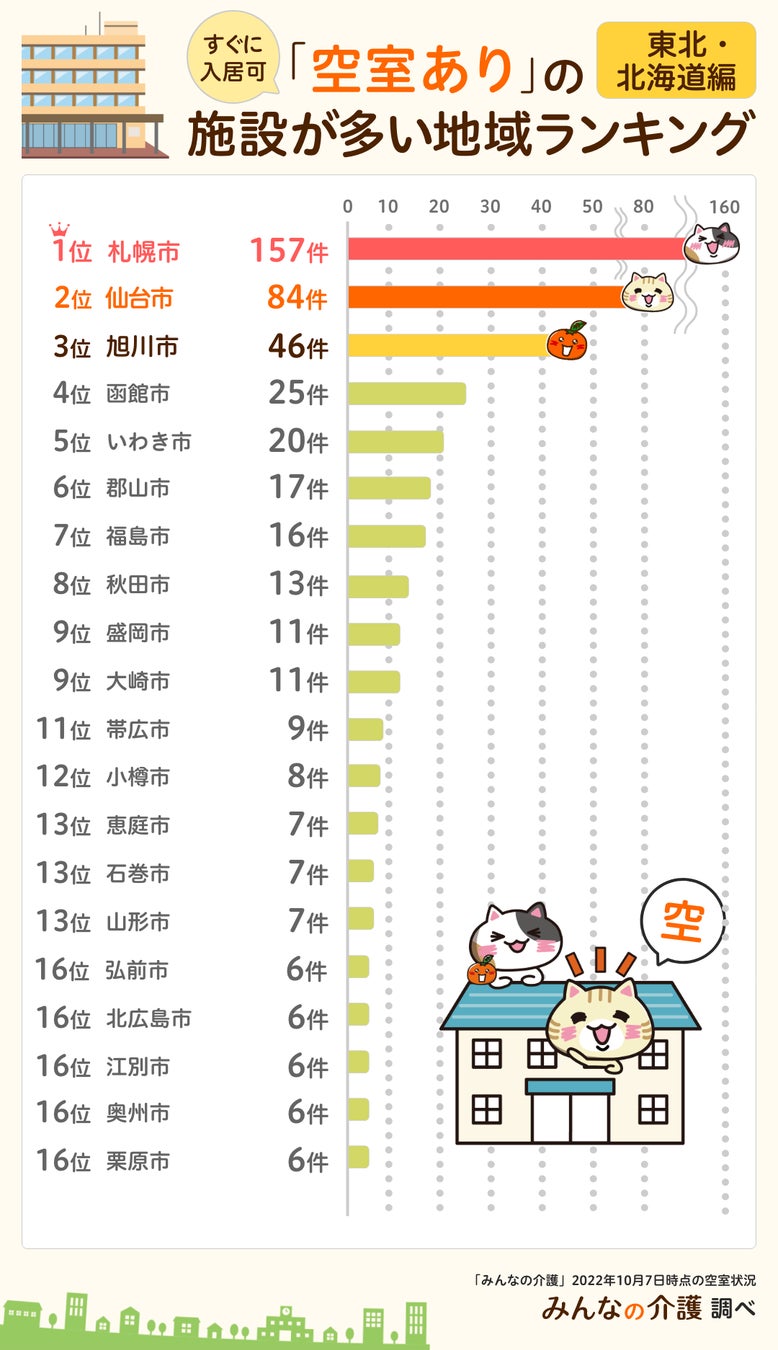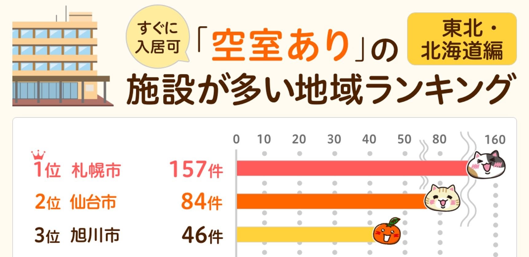 テキスト版、すぐに入居できる「空室あり」の施設が多い地域ランキング 【北海道&東北編】