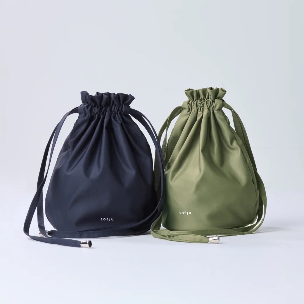 ブランド創立時から販売している、ソージュの定番・リモンタシリーズのエッセンスを感じていただけるオリジナル巾着。LIMONTA eastの再生素材を使用しています。「SOÉJU」ロゴ入りです。NAVYかKHAKIのどちらかが、抽選で600名様に当たります。