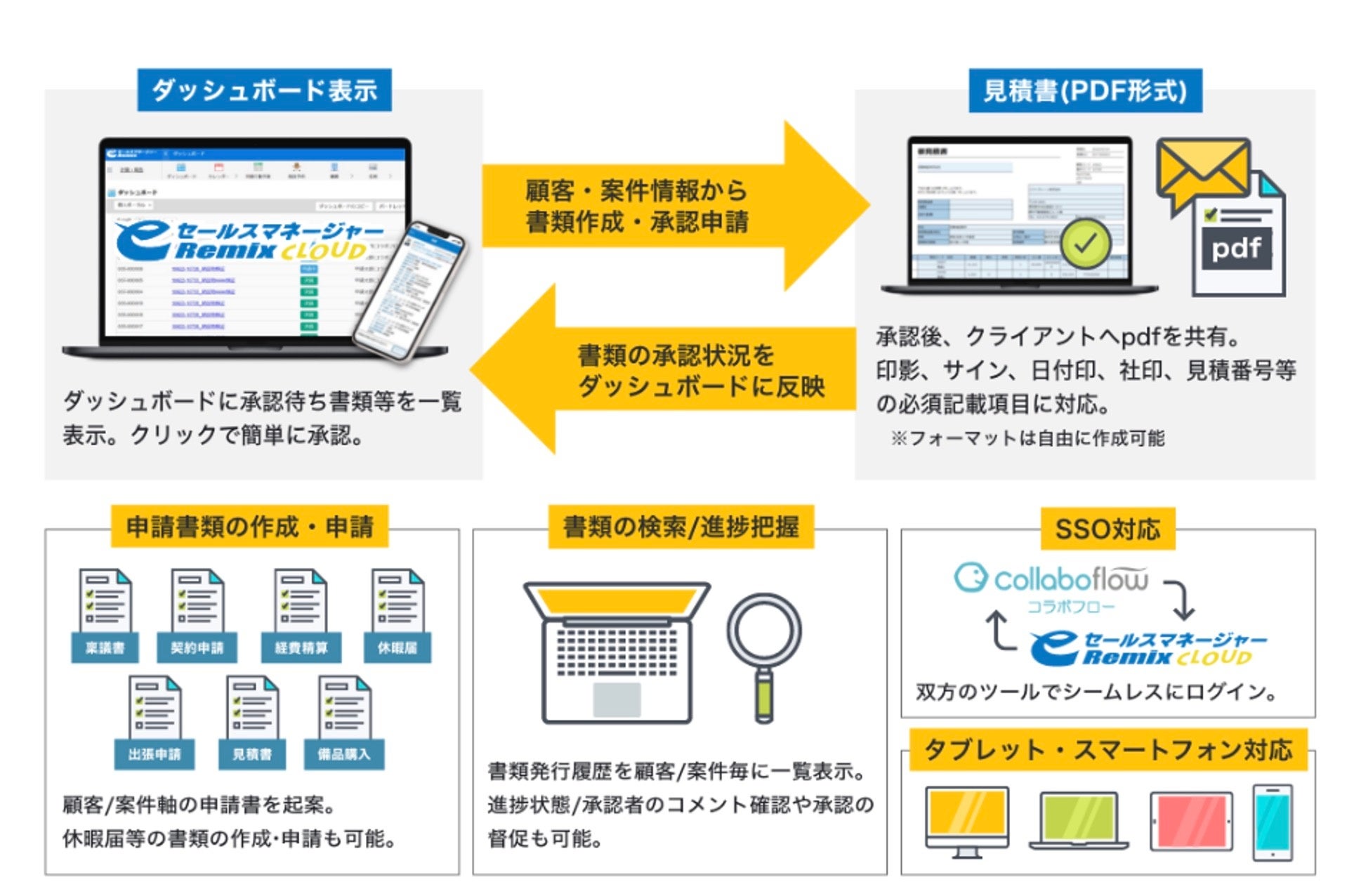 ワークフローの「コラボフロー」とCRM/SFAの「eセールスマネージャーRemix Cloud」が連携