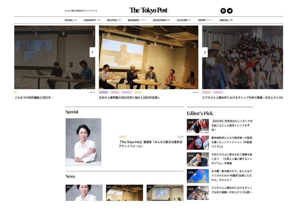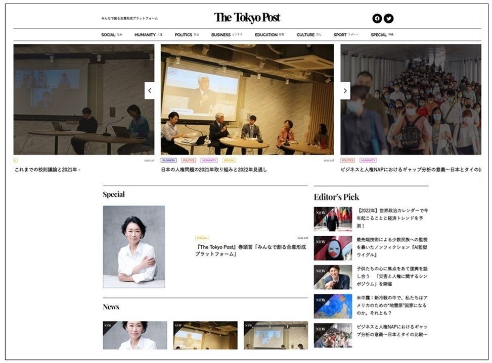 『The Tokyo Post』は、社会課題を提起し、“対話”を通じた合意形成による課題解決のアジェンダセッティングをしていく“合意形成プラットフォーム”です。人道・人権外交に関わる問題から、校則を切り口にした学校内民主主義の問題まで、国内外、官民を問わず、解決すべき社会問題を提起し、対話を促すことを通じて社会の合意形成を目指します。