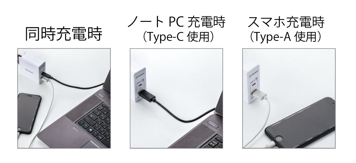 【ノートPC充電時(Type-C使用)】TypeーC ポートでの充電は50W超と高出力。これならノートPC用充電器としても十分!