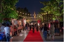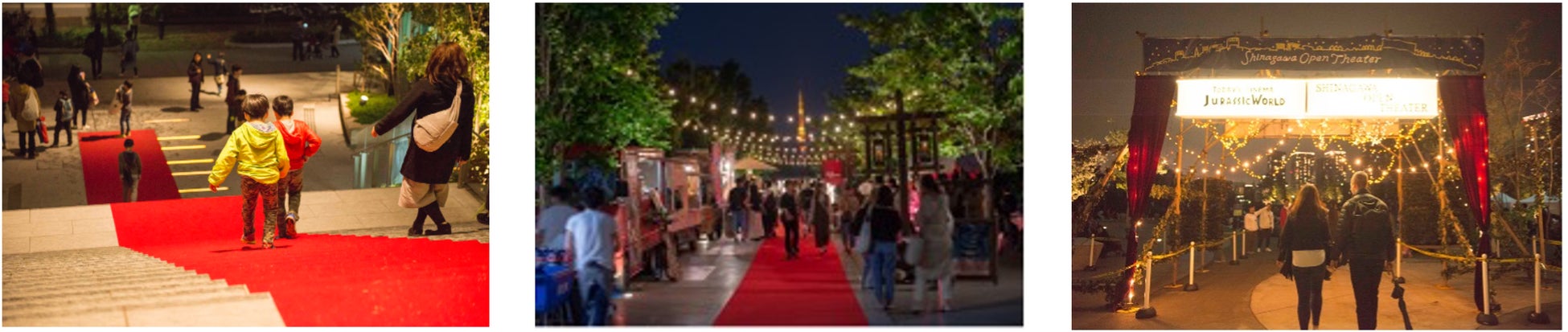 「品川オープンシアター」は、会場入り口から東京タワーに向かって伸びるレッドカーペットと広大な芝生の上に設置された巨大スクリーンが特徴的な無料の野外シアターイベントです。2016年9月を皮切りに、上映作品に合わせた空間演出が話題となり、これまでに累計約6万人以上が来場した人気イベントです。今回は、新型コロナウイルス感染症防止のため、映画鑑賞エリアへのご入場は事前予約制を取らせていただきます。日中には品川シーズンテラスや港南エリアのワーカーや地域住民が古本を持ち寄り、販売するフリーマーケット型の古本市を開催します。