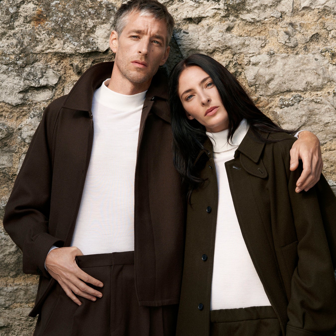 メンズでは、英国のモーターサイクルカルチャーに大きな影響を与えた「ベルスタッフ」のアウターに加え、ダッフルコートの名門「インバーティア」や、歴代ジェームズ・ボンドが愛用するドレスウェアの名門「ターンブル&アッサー」や「ハケット ロンドン」のチェスターコートが注目です。