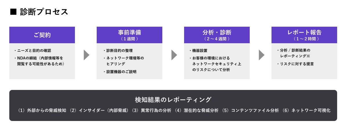 「Secure X-Ray」サービスは、「Network Blackbox」の技術を用いた高度なセキュリティ診断を最短1ヵ月で実施いただけます。