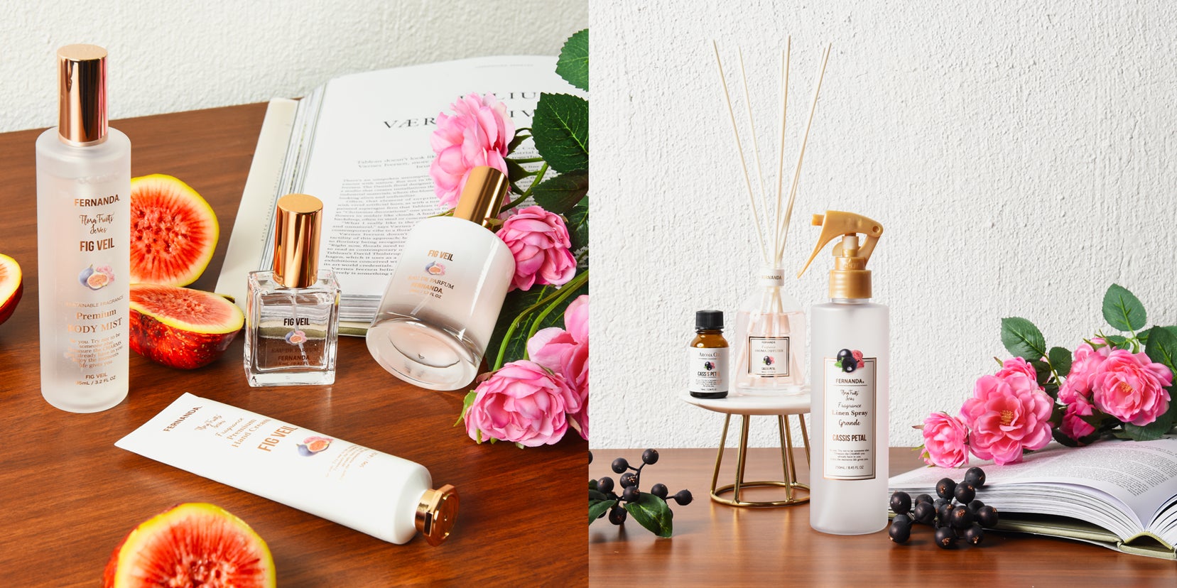 フェルナンダから新しく登場した「フローラ フルーティー シリーズ」は、自然の花々と新鮮な果実が織りなす繊細な調和を表現した、ちょっぴり贅沢で優雅さをもたらしてくれるフレグランスシリーズです。今回、お客様から商品化の声が多かった「フィグ」と「カシス」の香りが誕生しました。