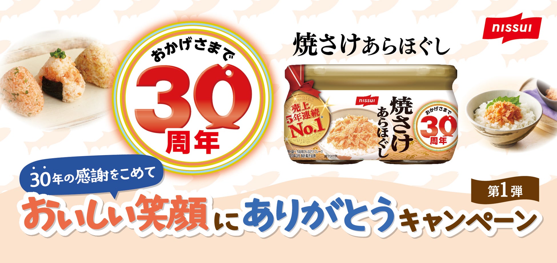 ニッスイ「焼さけあらほぐし」(びん詰)、発売30周年キャンペーン実施