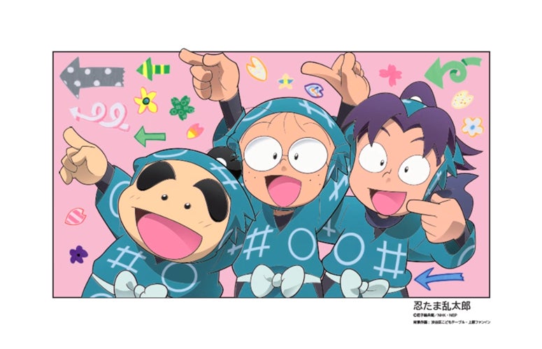 アート作品には「おじゃる丸」「もっと!まじめにふまじめ かいけつゾロリ」「忍たま乱太郎」「わしも」「ラブライブ!スーパースター!!」「かいじゅうステップ ワンダバダ」の6種類のアニメキャラクターが描かれており、それぞれ130cm×200cmサイズで避難場所の方向を示しています。このプロジェクトのために新たに描き下ろしたイラストもあります。アート背景はこども食堂「渋谷区こどもテーブル」のこどもたちがキャラクターのテーマや矢印をベースに、思うままのイラストを描き、切り抜き飾りました。それをNHKアートが後日データ化して配置し、賑やかで独創性あふれるコラボレーション作品に仕上げています。「シブヤ・アロープロジェクト」は発災時の「一時退避場所」の位置を外国人を含めた多くの来街者に認知してもらうため、日ごろから注目を集めるようなアート性あふれる「矢印サイン」を制作し、街に掲示することで帰宅困難者対策の一助を担う渋谷区のプロジェクトです。