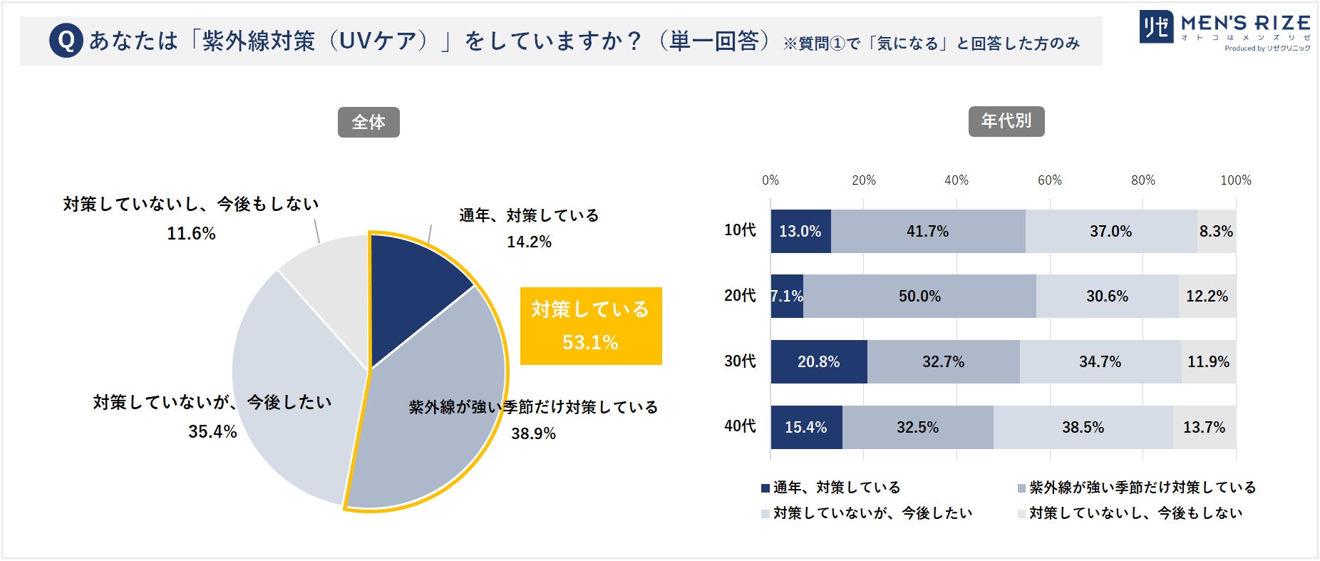- ◆②【紫外線対策】半数以上の男性が「紫外線対策をしている」ことが判明(53.1%)