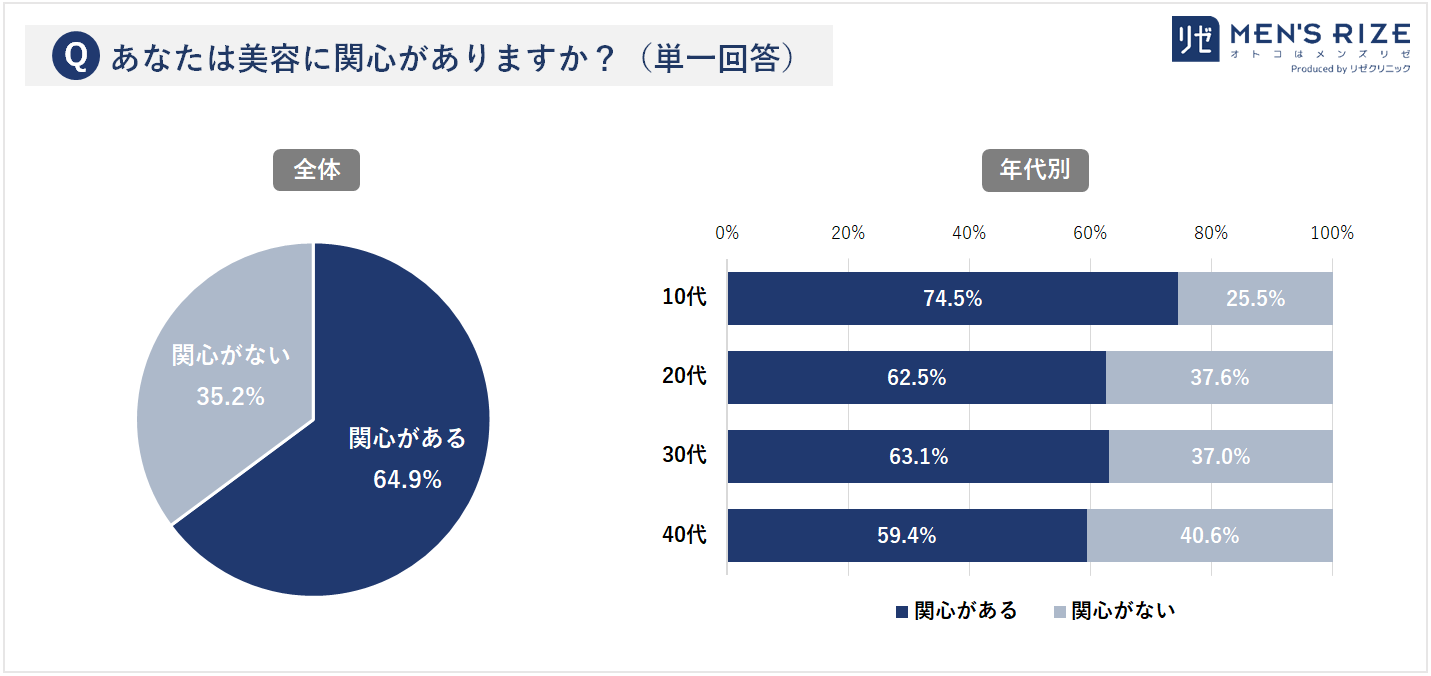 - ◆⑥【美容への関心】男性の6割以上が「美容に関心がある」と回答(64.9%)