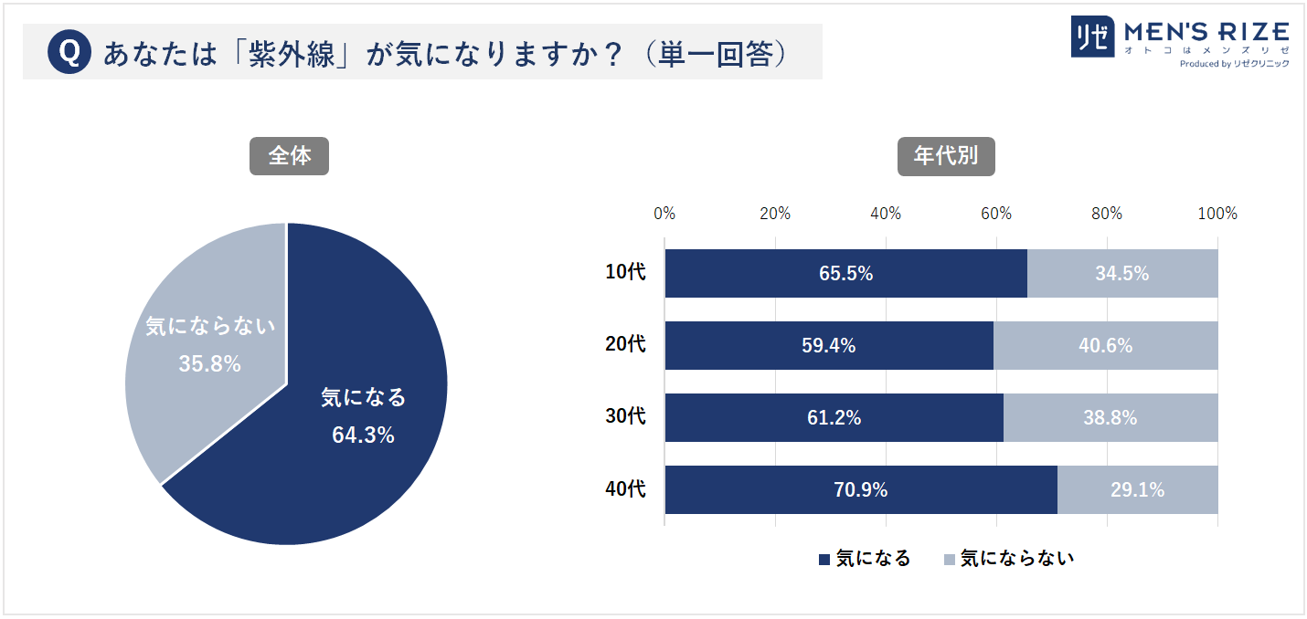 - ◆①【男性の紫外線への意識】6割以上が「気になる」と回答(64.3%)