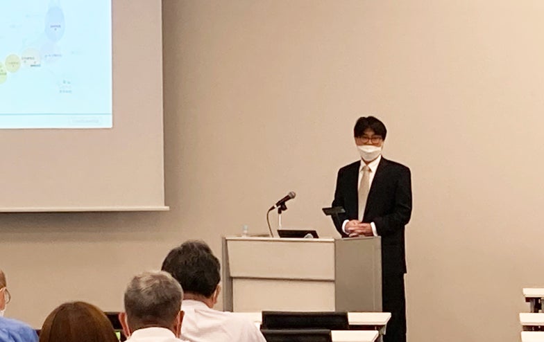 当社取締役営業部長の松本より、事業用賃貸保証の概要を話しました。「1.民法改正による極度額の設定義務化及び連帯保証人への情報提供義務が設けられ、連帯保証人の負担が増加していること、2.新型コロナウイルスの影響で法人の倒産件数が増加傾向にあること」等の社会的背景を説明し、その結果、保証会社の利用率が拡大していることに言及いたしました。