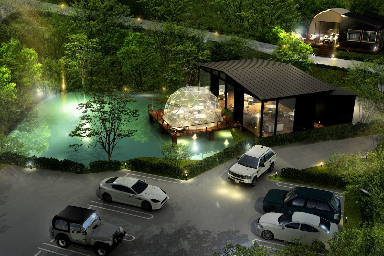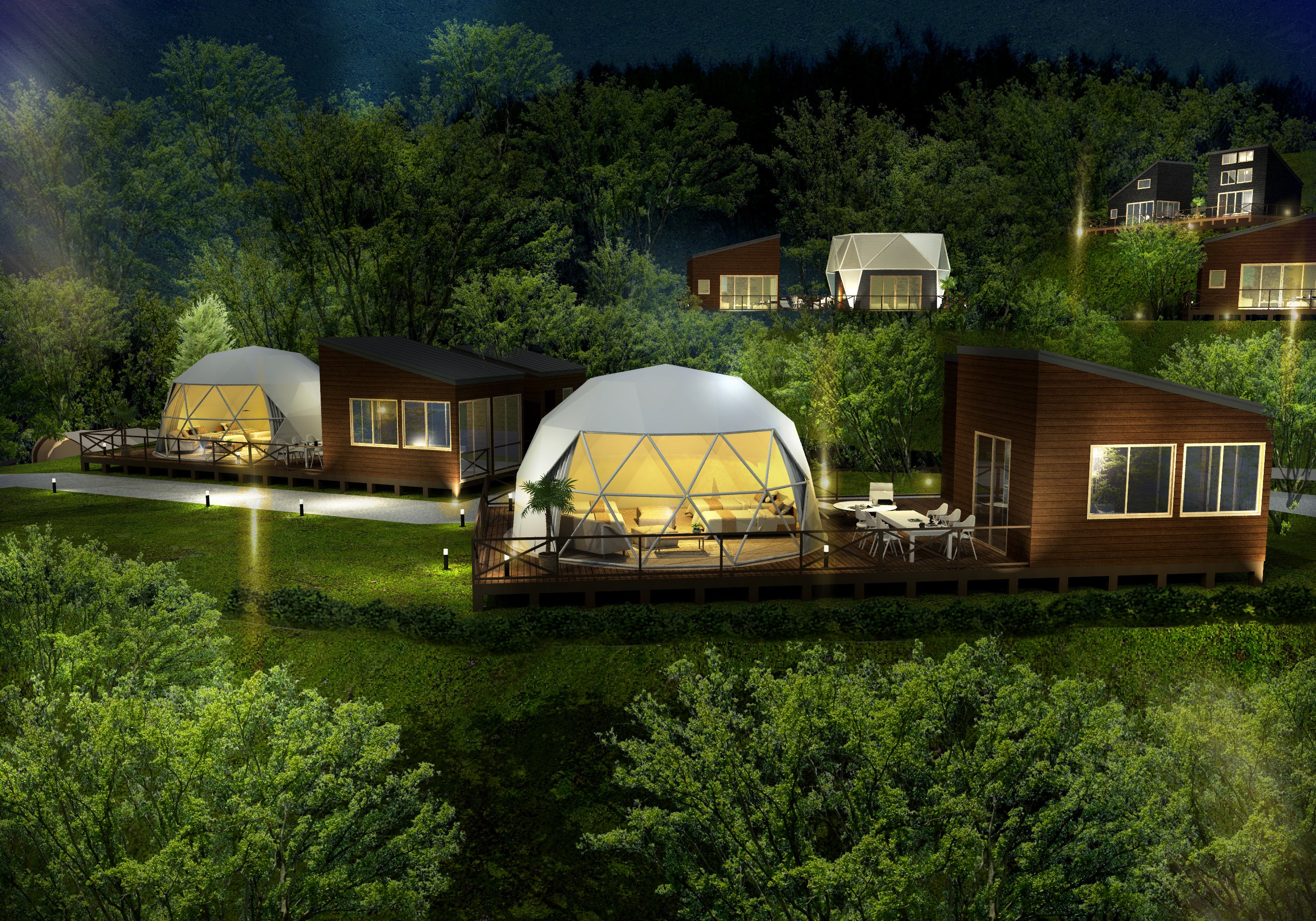茨城県土浦市/自然豊かな丘陵地に誕生した、全15棟の高規格グランピング施設。