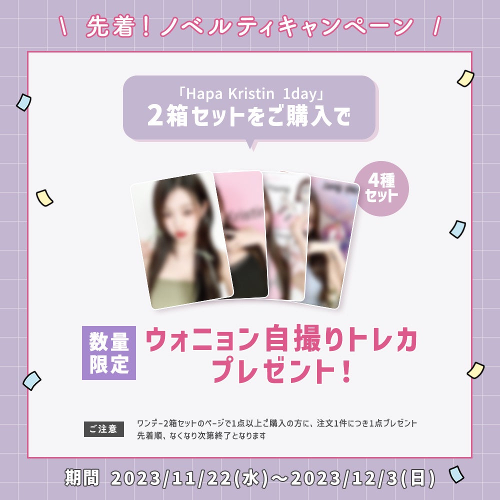 新色One&Only Kristin、Dewy Kristin含む「Hapa Kristin 1day」2箱セットのご購入で、ウォニョン自撮りトレカ1セット(4枚)をプレゼント