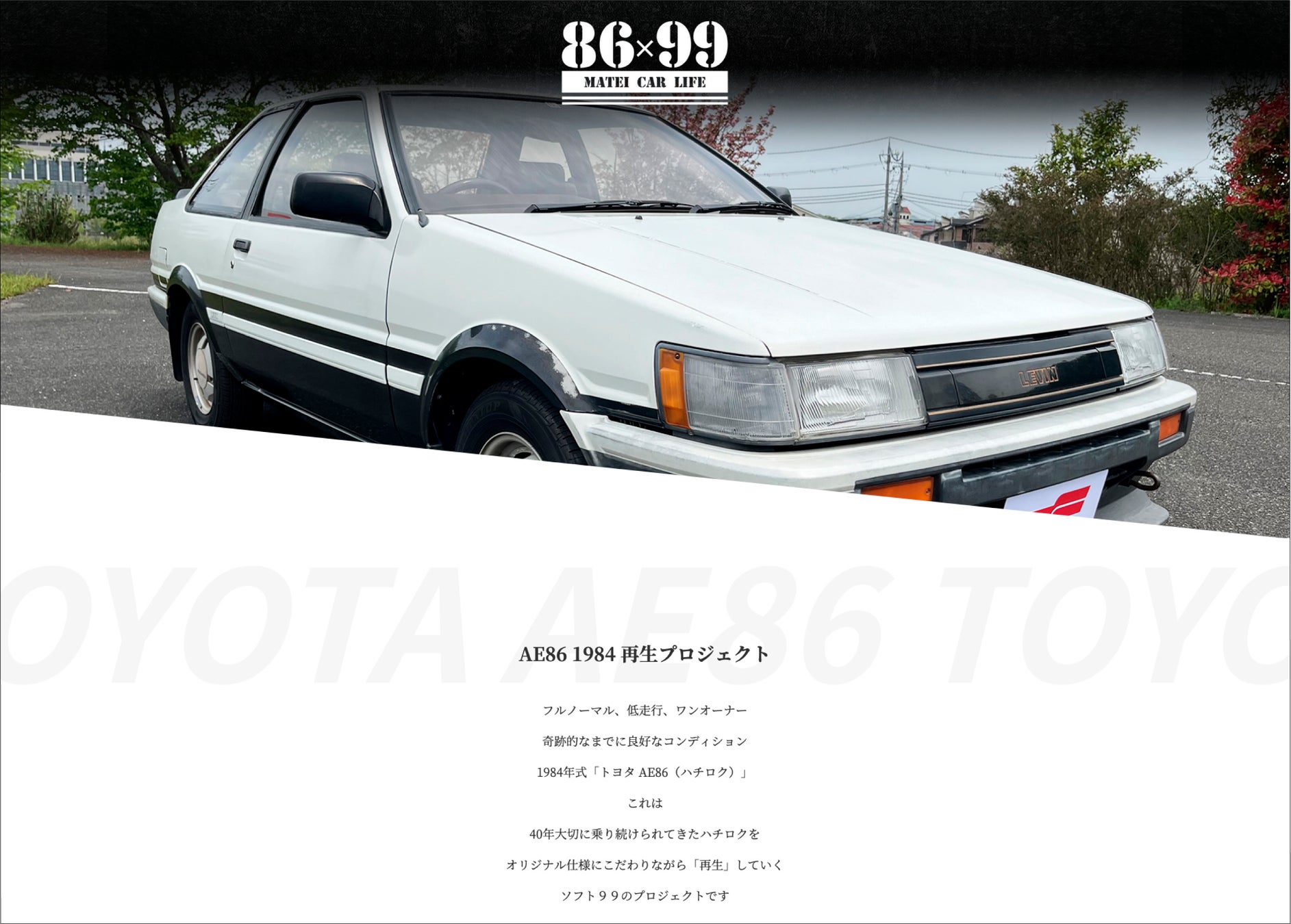 紹介メディアURL:特設コンテンツ ▶ https://www.99kobo.jp/rebirth_project/toyota-ae86/