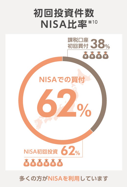 *10:2024年7月末時点。2024年3月26日以降の新規契約の当初投資でNISA口座を使用した件数の比率