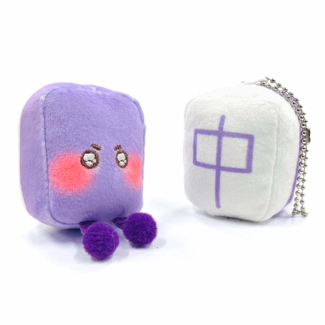 おなじみの麻雀アイテムをキャラ化。チャームポイントは、豪華な刺繍のうるうるお目目!