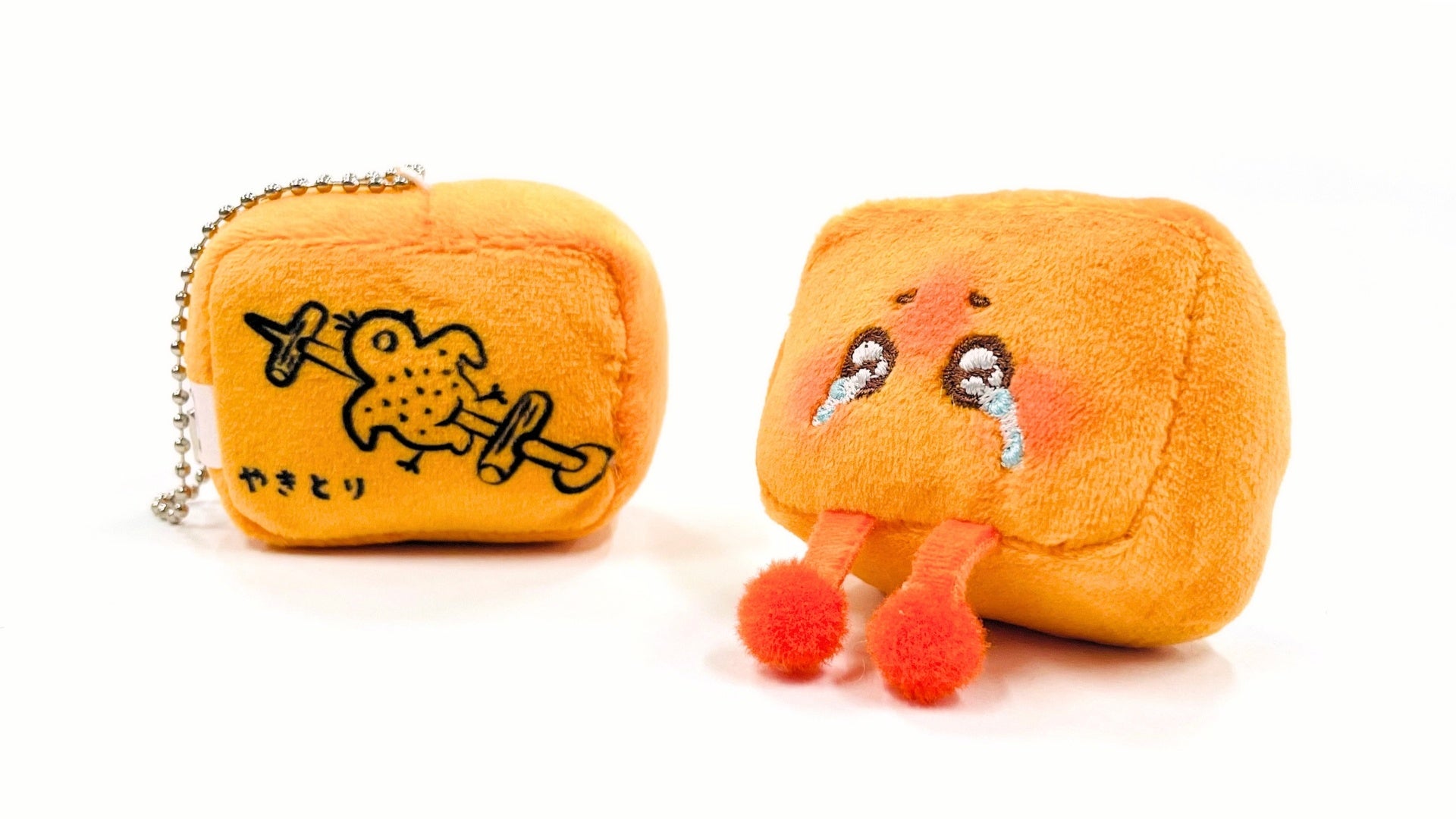『うるるん雀荘 麻雀ぬいぐるみ』では、お目目をうるませ号泣するうるるんの裏側に焼き鳥マークをプリントし、不憫さを倍増にしました。にっこりウインクするイーソウとは対照的です。