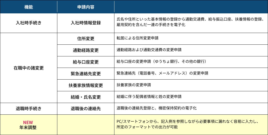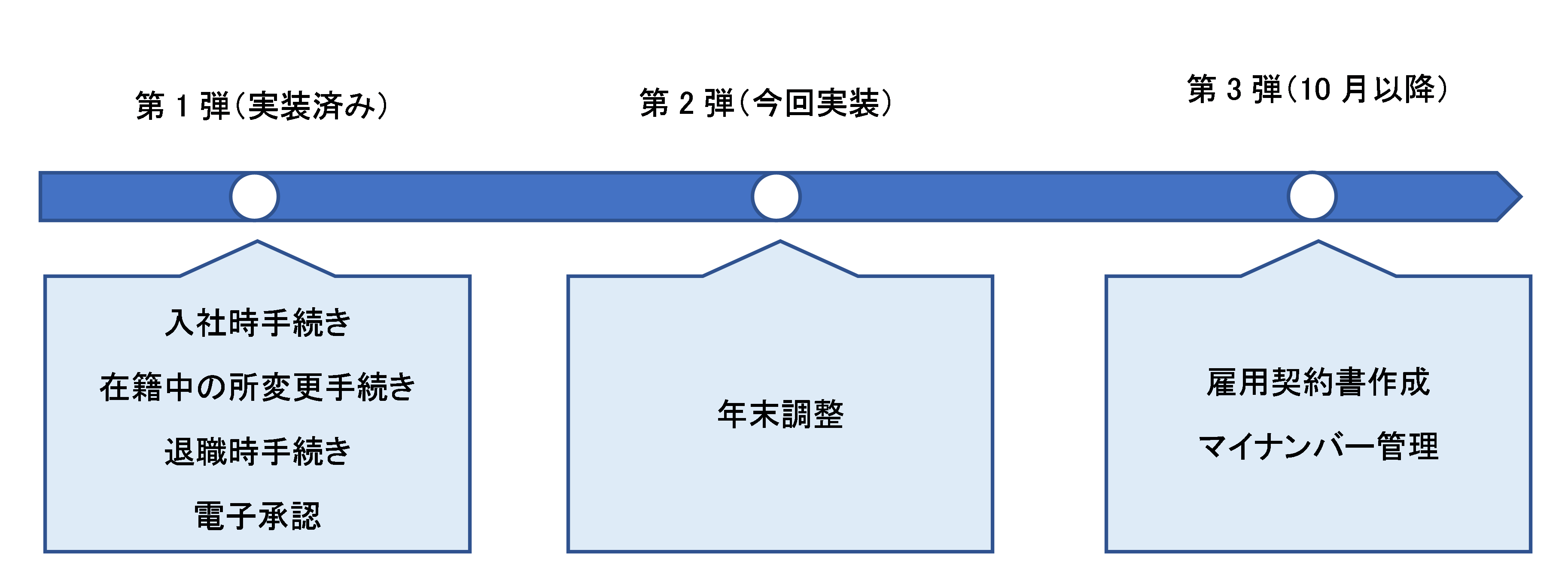 今回追加実装した年末調整機能に加え、雇用契約書の作成、マイナンバー管理にも対応予定です。