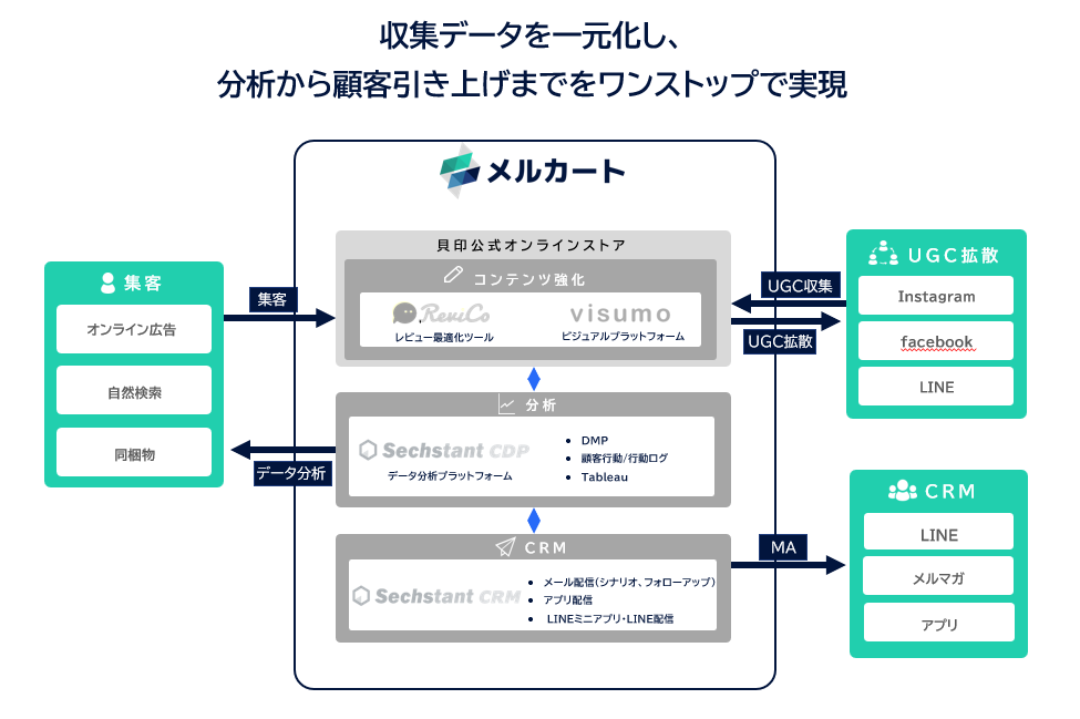 メルカートは、中堅・大手企業向けに「データ統合」と「AI活用」をワンストップで提供する、国産のSaaS型クラウドECプラットフォームです。最大の特長は、散在する顧客・在庫データを統合し、AIエージェントが最適な販売戦略を導き出す「次世代の成長環境」。AIによる業務効率化と高精度なパーソナライズにより、導入企業の平均売上成長率480%を実現。高度なマーケティング機能と販促施策により、新規客を一度きりで終わらせず、生涯のファン(LTV向上)へと変貌させます。年間240件に及ぶ無料アップデートで常に最新トレンドを反映し、サポート満足度97%を誇る手厚い伴走支援体制も完備。業界最高水準のセキュリティを兼ね備えたビジネスを成功に導くおすすめのECカートとして、多くの成長企業に選ばれています。