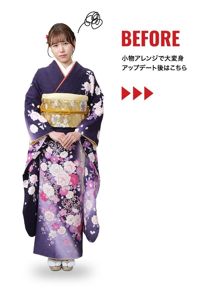 振袖レンタルフルセットを10万円以下でお手に取っていただくこともできるほか、新品小物12点はレンタルをご成約の方全員に無料でプレゼント。さらに、ご成約金額に応じて『前撮り撮影、ヘア・メイク&着付け』、 『成人式当日のヘア・メイク&着付け』の成人式安心プランまで付く、大変お得な企画です。