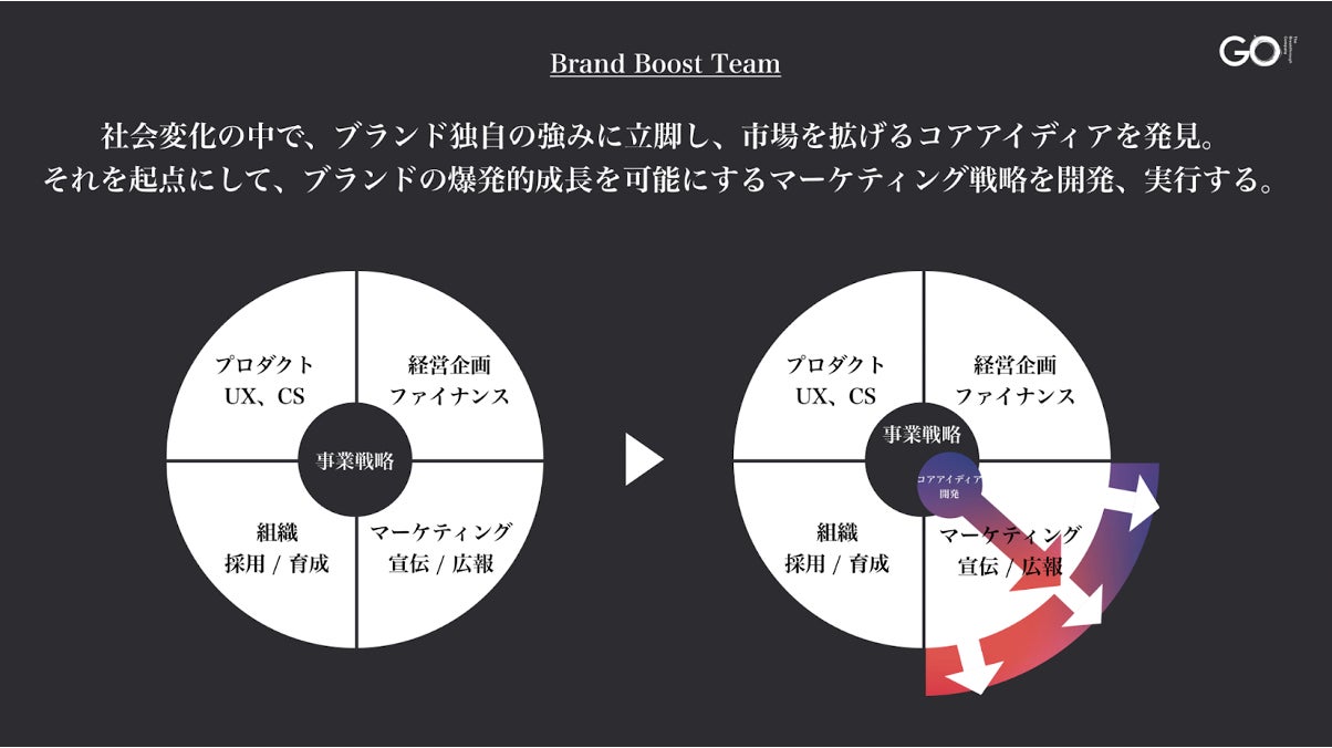 2024年よりプロモーションに強みを持つBrand Boost チームと、ブランディングに強みを持つPurpose Deepeningチームに組織を再編。クリエイティブによる顧客課題の解決、事業成長へのコミットをより強めていきます。