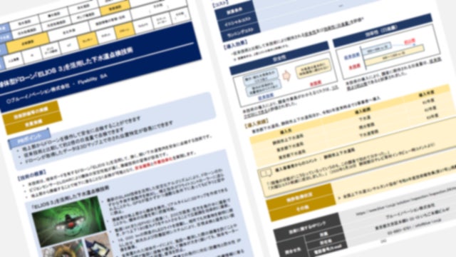 ブルーイノベーション株式会社(本社:東京都文京区、代表取締役社長:熊田 貴之、以下 ブルーイノベーション)は、国土交通省が策定した「上下水道DX技術カタログ」※1に、球体型ドローン「ELIOS 3」を活用した下水道点検技術が掲載されたことをお知らせします※2。本技術は、上下水道施設のメンテナンスを高度化・効率化するためのデジタル技術の一環として、今後の下水道点検に革新をもたらすものです。