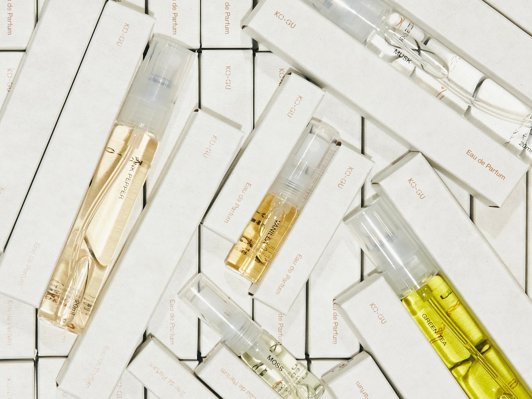 ・KO-GUのお好きな香りのミニ香水(3.5ml)を3種選べるキットを販売。(3種 税込3,300円)