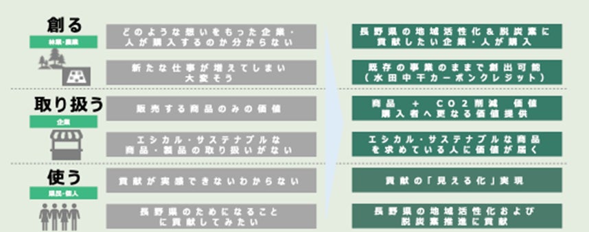 地域社会:カーボンクレジットの創出による新たな収益機会の提供と、持続可能な地域経済の発展。