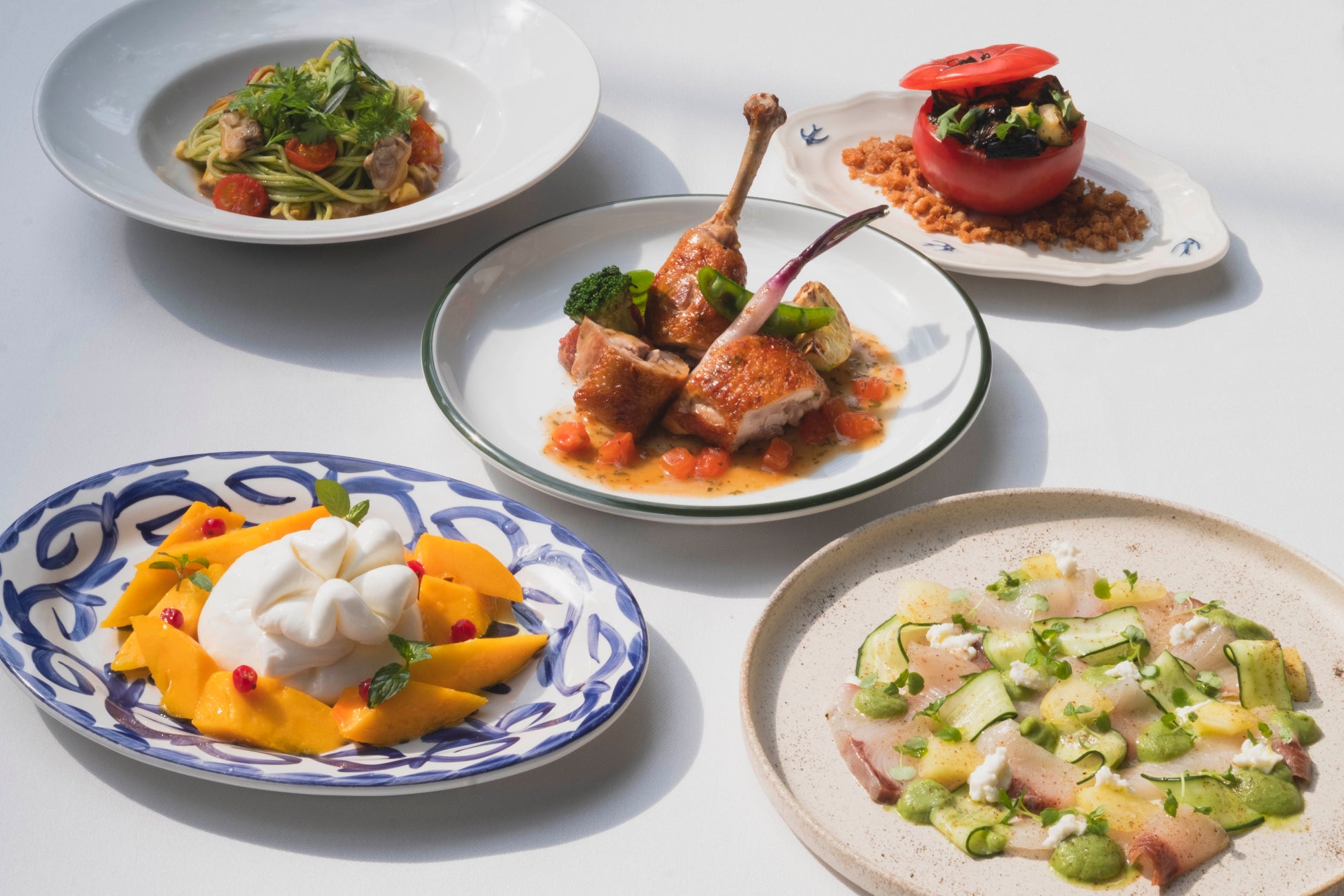 前菜には、鹿児島県産カンパチを使い、胡瓜のソースとメロンの果肉を加えたガスパチョを添えた「鹿児島県産カンパチのカルパッチョ 胡瓜のガスパチョ」をご用意。みずみずしい野菜とフルーツの風味が、カンパチの旨みを引き立てます。パスタメニューには、真鯛とあさりをハーブとともに煮込んだ「真鯛とあさりのラグーパスタ」を。海の幸の豊かな味わいと香り高いハーブが、暑い季節にぴったりの軽やかな仕上がりです。