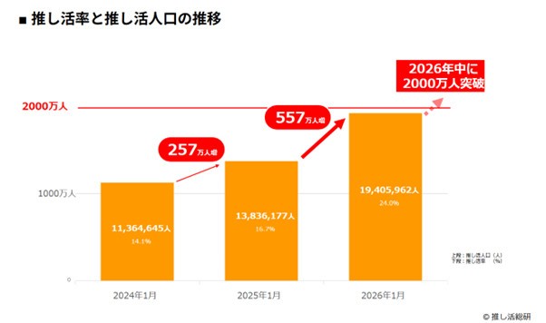 【1】推し活人口は約1940万人。前年より556万人増、2026年中に2000万人越えがほぼ確実に。