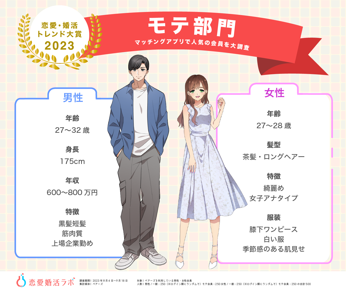 【3】《モテ部門》マッチングアプリで人気の男性は高身長・高収入男子で、人気の女性は綺麗め清楚系女子