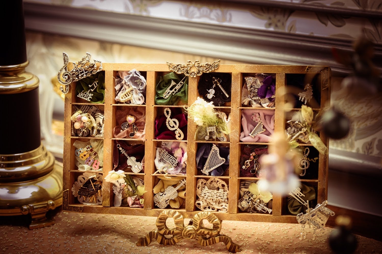 テーマである音楽からインスピレーションを得た花や音符の作品は、手すき和紙素材の優しさ、自然の色味が癒しの演出となっています。