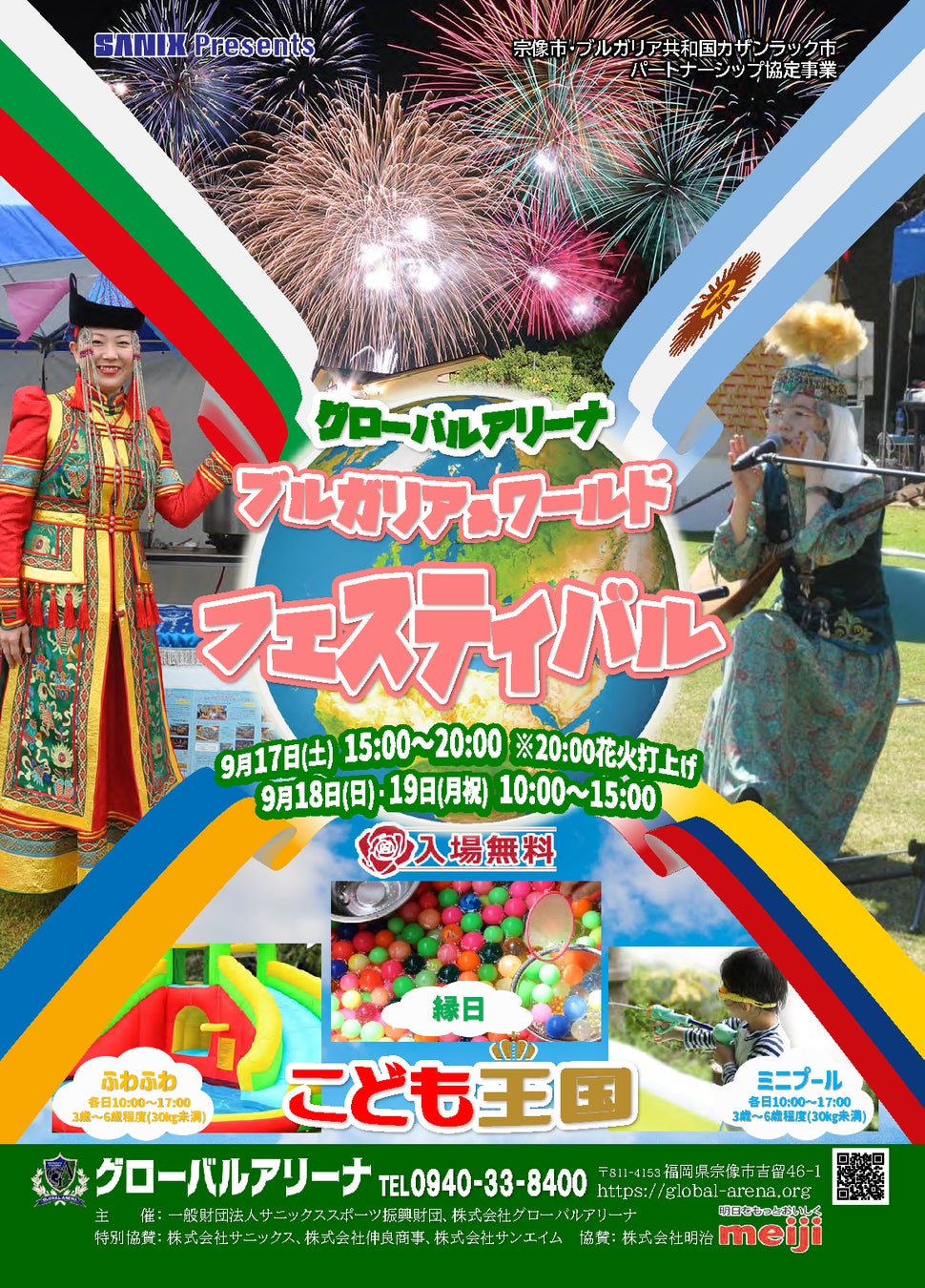 株式会社サニックス(本社:福岡県福岡市、代表取締役社長 宗政 寛)は、本日(9月12日)から開催される「グローバルアリーナ・ブルガリア&ワールドフェスティバル」に協賛いたします。