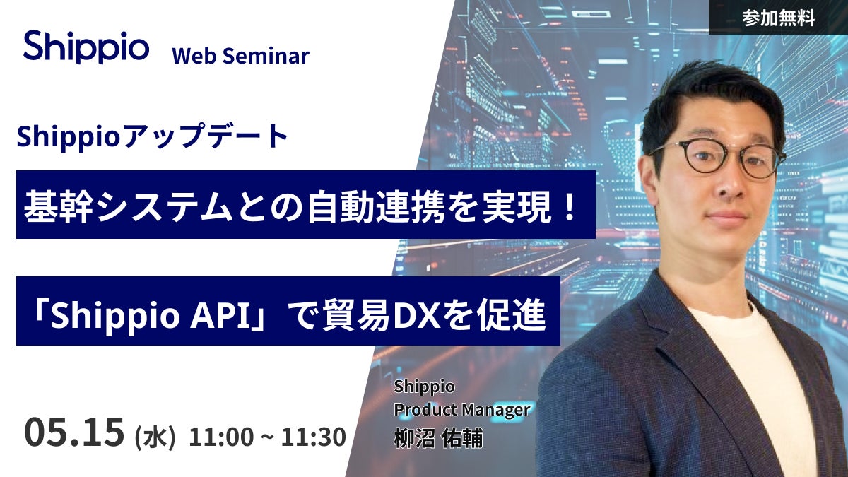 株式会社Shippio(本社:東京都港区、代表取締役CEO:佐藤 孝徳、以下 Shippio)は、国際物流プラットフォーム「Shippio(シッピオ)」と各企業が利用している基幹システムを連携する「Shippio API」の提供を開始いたしました。「Shippio」と各荷主企業が利用している基幹システムをAPIで連携し、貿易実務の自動化や輸送データの活用を促進することで、国際物流業界の業務効率化に寄与いたします。