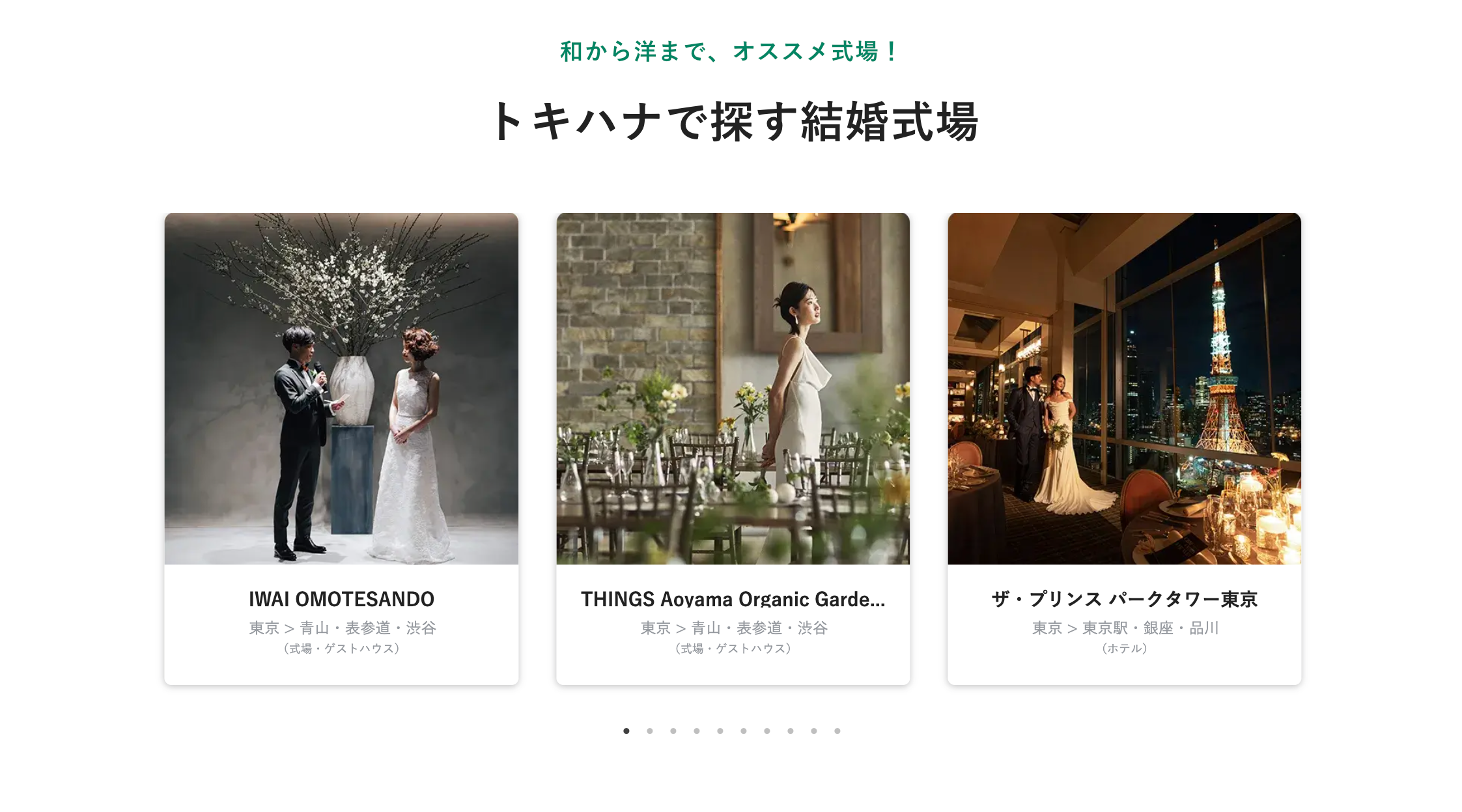トキハナでは、海外スタイルの結婚式から、日本ならではの伝統的な和婚まで、実績豊富なオススメ式場を多数取り揃えています。