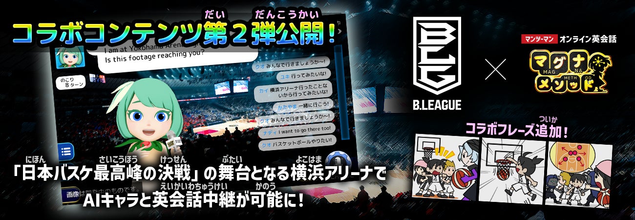 B.LEAGUEと英会話スクールのマグナメソッドのコラボ第2弾!横浜アリーナを舞台にAIキャラと英会話ゲームに挑戦しよう!