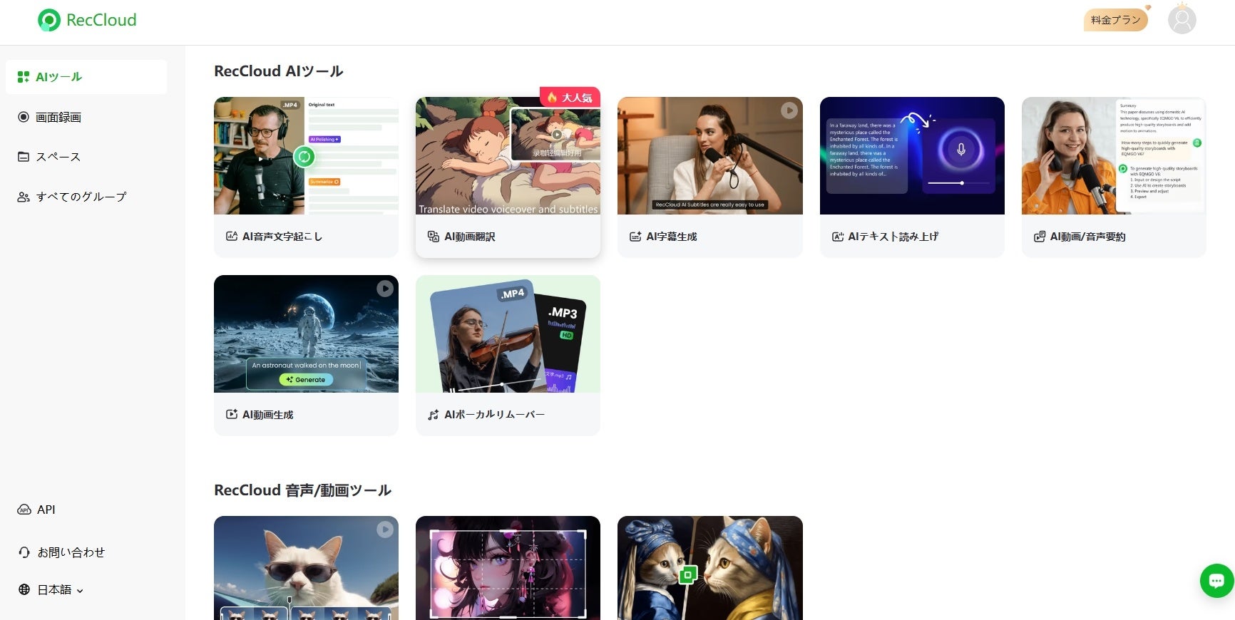 ウェブブラウザ版:RecCloud公式サイトから即時利用可能