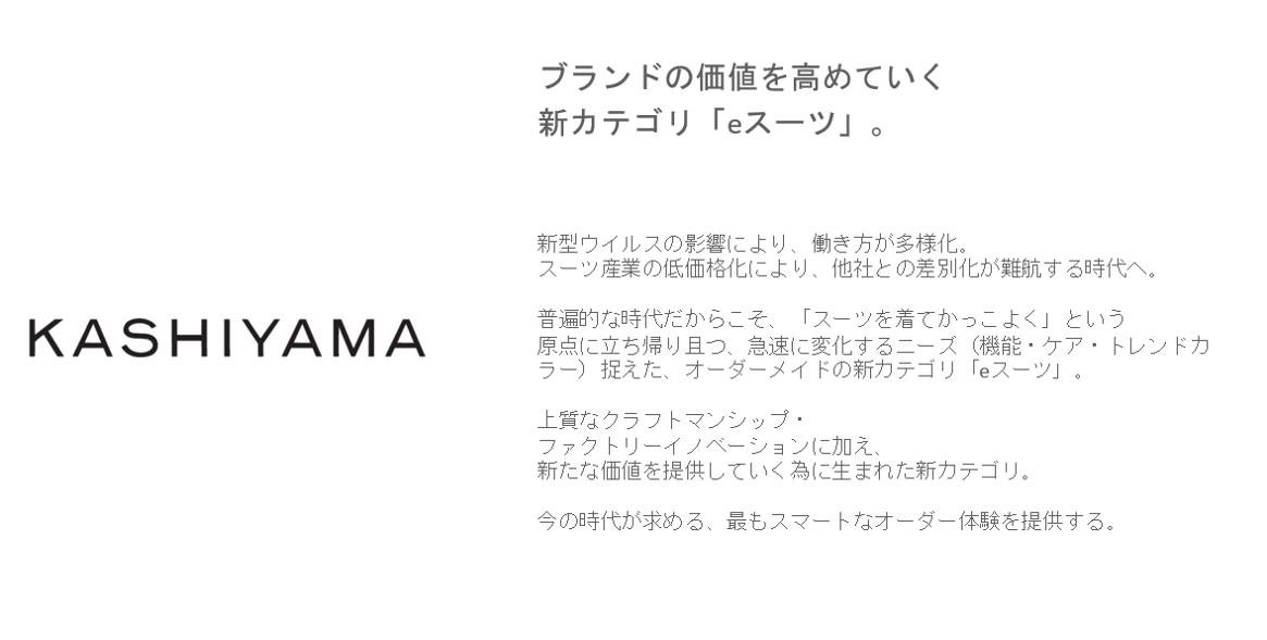 『KASHIYAMA』新開発商品”ストレスフリーなオーダーメイド”『eスーツ』を販売スタート!