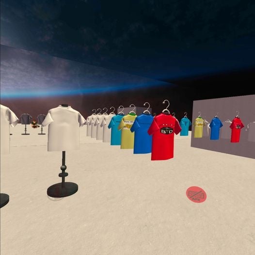 左は、Tシャツの店舗、右はアバターに自分の好みの服を着させるフィッティングルーム。