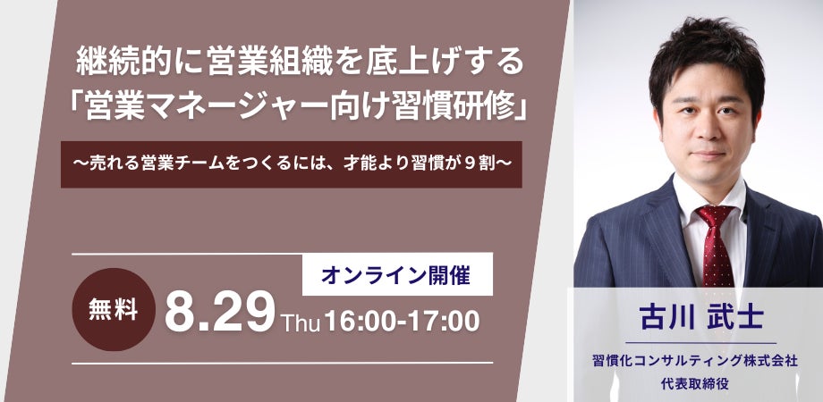 【8月29日無料オンラインセミナー開催】継続的に営業組織を底上げする 「営業マネージャー向け習慣研修
