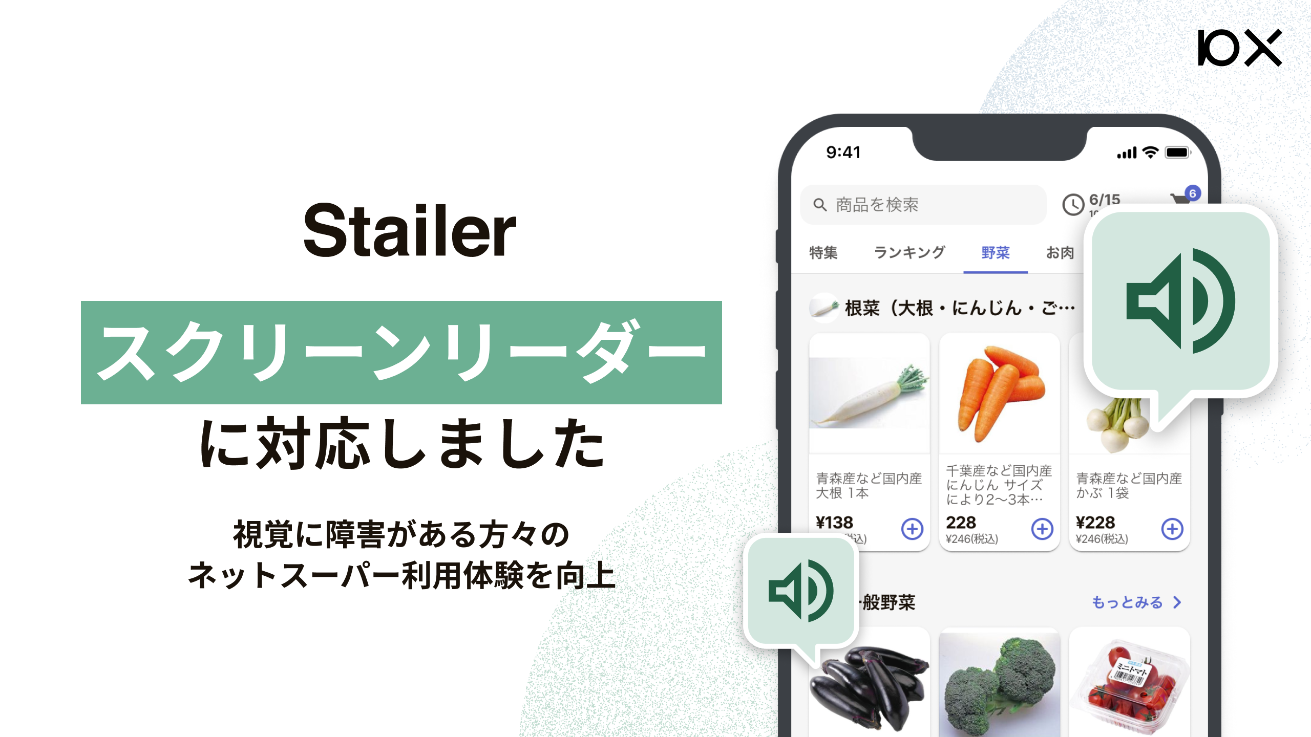 10Xが小売事業者に提供するネットスーパーのプラットフォーム「Stailer」はアクセシビリティの向上を通じ、ネットスーパーの利用がより身近になり、多様なお客さまに安心してお買い物をしていただくことを目指しています。