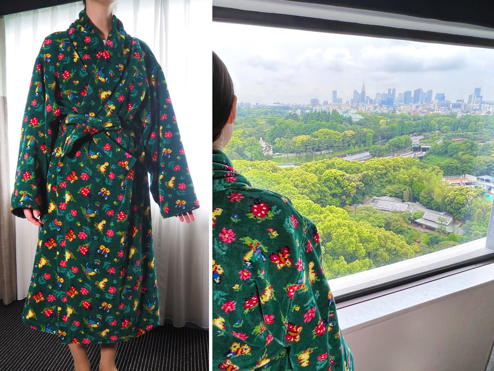 バスローブ、ベッドスロー、クッション、タオルは、今回の「 #ハイジロイヤルグリーンルーム 」のために作られた特注品。中でもこだわりは他では着ることのできないバスローブ。シュニール織の生地を贅沢に使って「フェイラー」ファン評判の厚みのある柔らかな質感に仕上げた着心地抜群のバスローブで寛ぎのホテルステイをお過ごしください。※バスローブ、ベッドスロー、クッション、タオルはお持ち帰りいただけません。