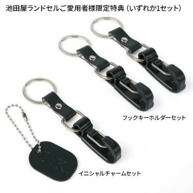 また、本リメイクサービスは、池田屋以外のランドセルもリメイクできるというのが特長ですが、池田屋ランドセルをご愛用の方限定特典があります。イニシャル刻印のある池田屋ランドセルをお使いの場合には「イニシャルチャーム」と「フックキーホルダー」を1点ずつ、イニシャル刻印のない池田屋ランドセルをお使いの場合には「フックキーホルダー」を2点、一緒にお届けします。