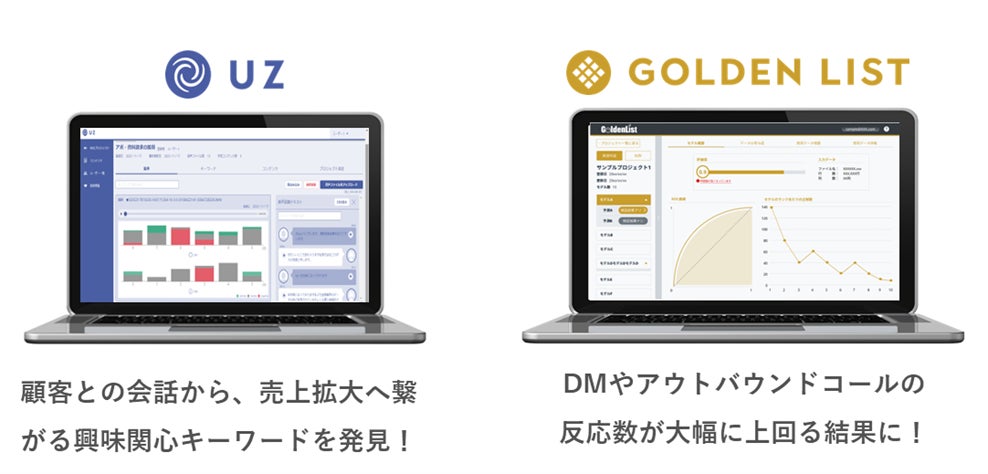 当社ブースでは、VOC(顧客の声)を活用し企業の売上拡大や広告価値最大化を支援するサービスとして、コールセンターで蓄積している通話録音データから顧客の興味・関心をAI で解析し、高い訴求効果が見込める「興味関心キーワード」を抽出する最新AIマーケティングシステム「UZ」と、全国の地域金融機関で続々採用されており、金融業界や通販業界等で多くの導入実績があるAI顧客分析/リスト作成サービス「GOLDEN LIST」を中心にご紹介いたします。