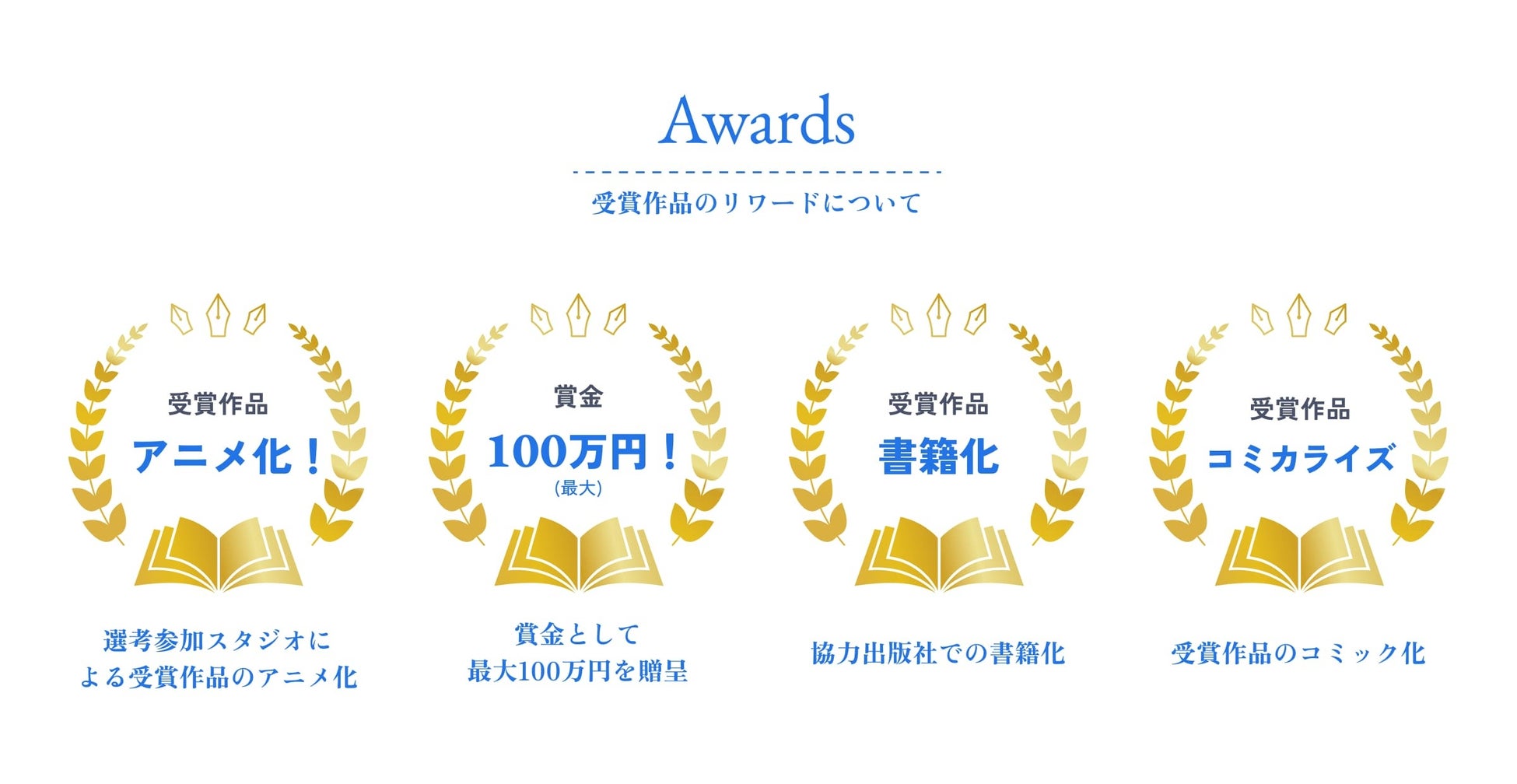 選考段階では、アニメ化を本格的に検討するため、16のアニメーションスタジオが審査に参加。応募ジャンルは不問です。あなたが「面白い!」と思う作品をお待ちしています。世界に羽ばたく作品を目指す小説家の皆さん、ぜひご応募ください。