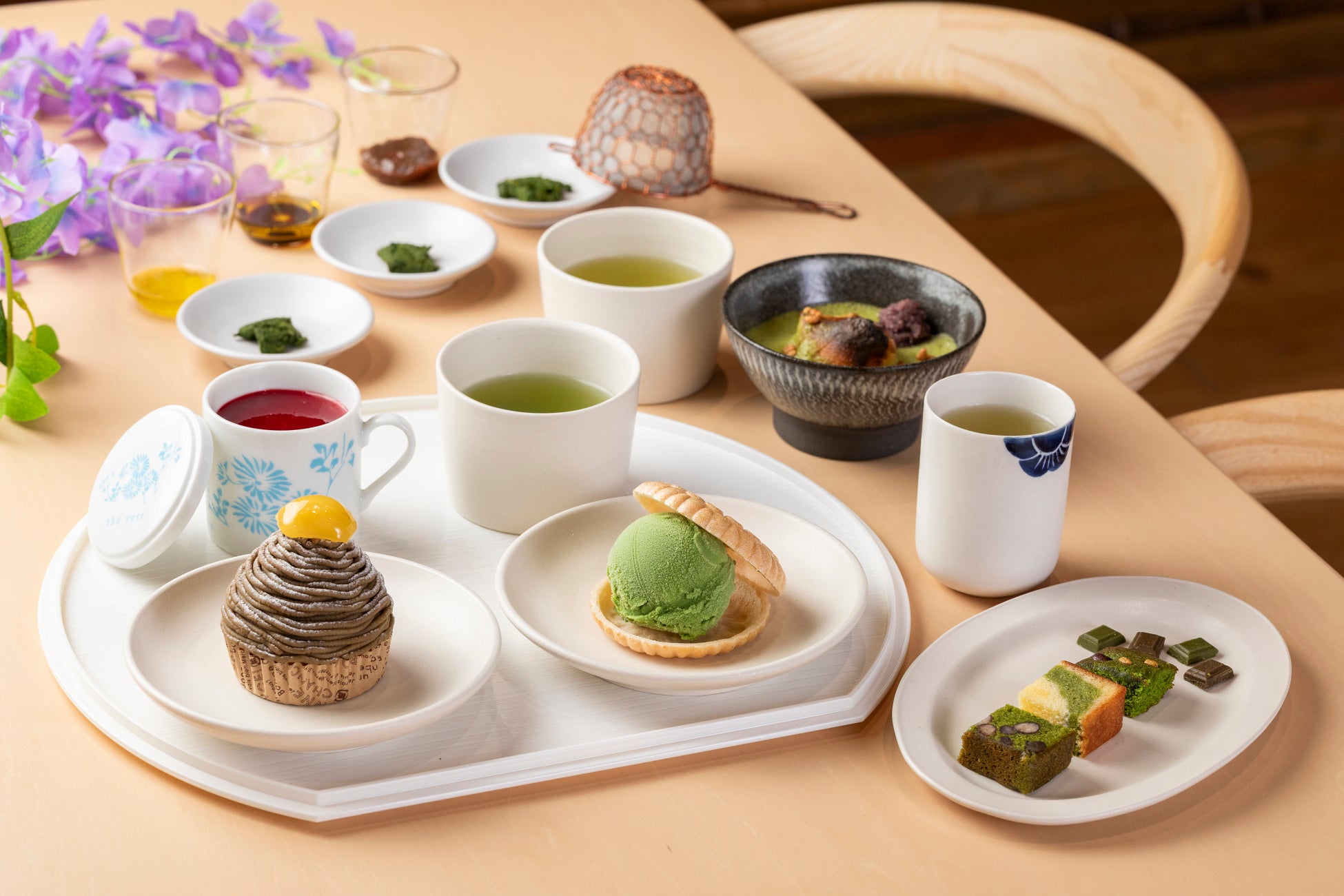 森木農園の一番茶ほうじ茶には香ばしさと調和するゴロゴロいちごのバスクチーズケーキを。深蒸し茶には濃厚な茶米ガトーショコラと果実やアイスを包んだ米粉のクレープを合わせ、お茶とスイーツの絶妙なペアリングで至福のひとときをお楽しみください。