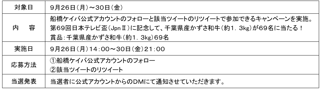 〇船橋ケイバ秋の和牛祭り!Twitterフォロー&RTキャンペーン