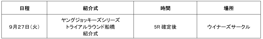 ※船橋競馬対象レース:9月27日(火)ヤングジョッキーズシリーズTR【船橋】全2戦