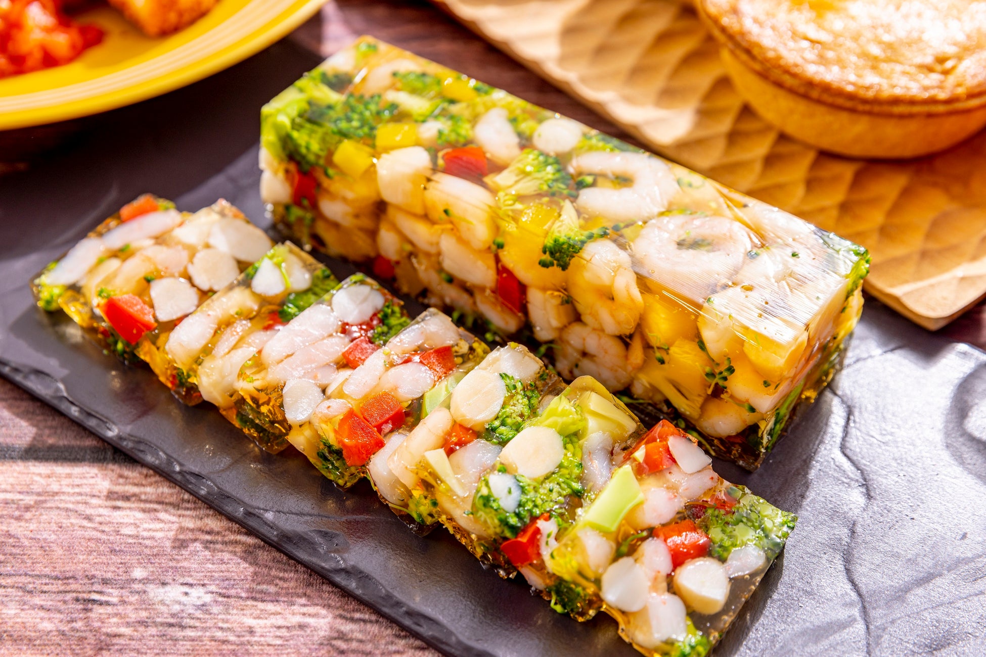 シーフードアスピックとシャルキュトリーのグレイジングボード