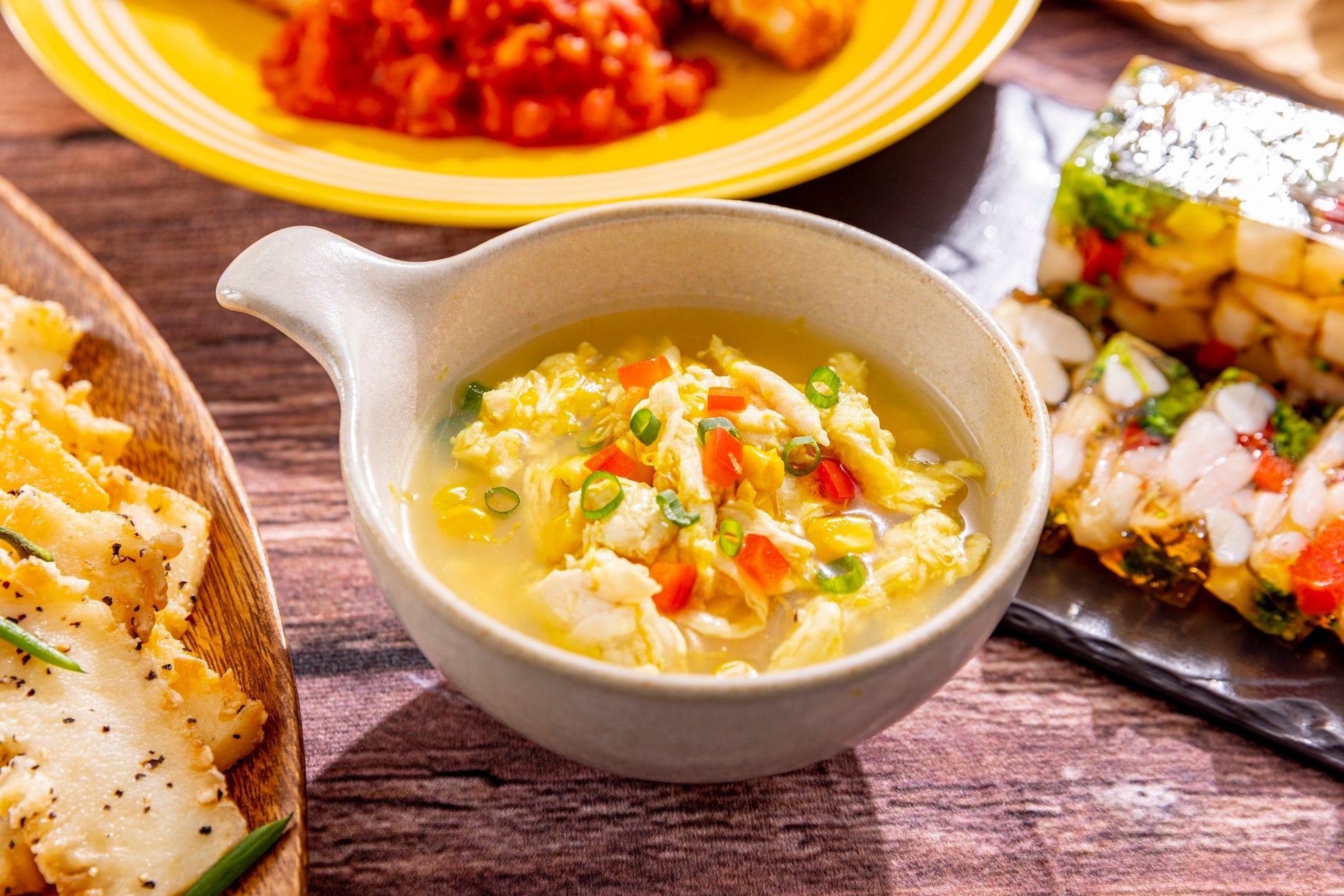 生姜、ウコン、五香粉を使って薬膳スープ風にアレンジしたチキン&コンソメスープ。